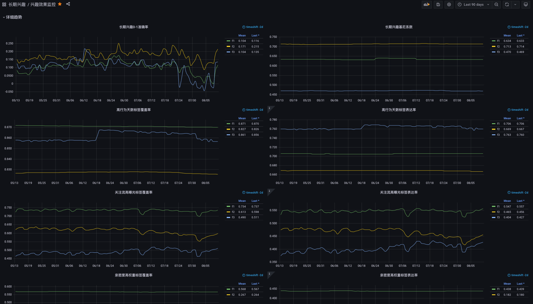 • 预测用户兴趣:用用户过去30天点击过的兴趣标签的比例分布,作为基线。