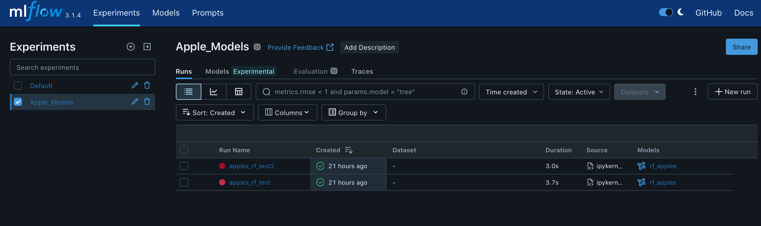 mlflow models serve -m "models:/rf_apples/1" --port 8565